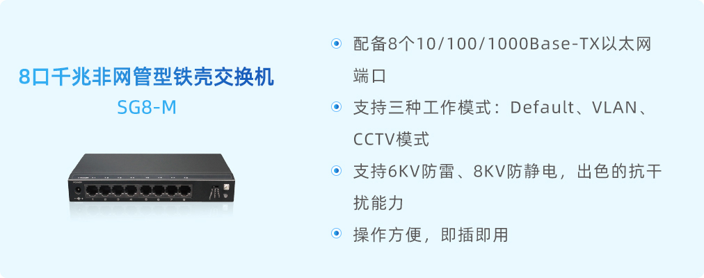該系列交換機(jī)支持Default、VLAN(虛擬局域網(wǎng))和CCTV三種工作模式,這種多樣化的工作模式為用戶提供了極大的靈活性和便捷性。Default模式所有端口均可自由通信,適用于簡(jiǎn)單網(wǎng)絡(luò)環(huán)境,無(wú)需復(fù)雜配置即可快速搭建;VLAN模式下聯(lián)端口相互隔離,但可與上聯(lián)端口通信,能夠有效隔離不同部門的網(wǎng)絡(luò)流量,提升網(wǎng)絡(luò)的安全性和管理效率;而CCTV模式則是針對(duì)安防監(jiān)控系統(tǒng)的特殊需求定制,通過(guò)一鍵設(shè)置即可將下聯(lián)端口速率調(diào)整為10M,并延長(zhǎng)最遠(yuǎn)傳輸距離至250米,這一特性尤其適合大規(guī)模、遠(yuǎn)距離的監(jiān)控網(wǎng)絡(luò)部署。
