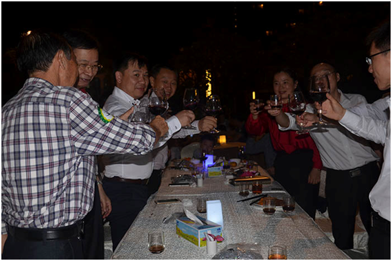 眾領(lǐng)導(dǎo)舉杯慶祝