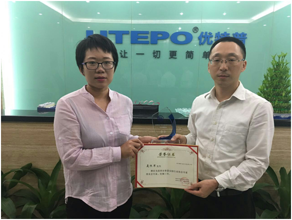 專家委員會(huì)為優(yōu)特普總工程師聶懷軍(右)頒發(fā)聘書