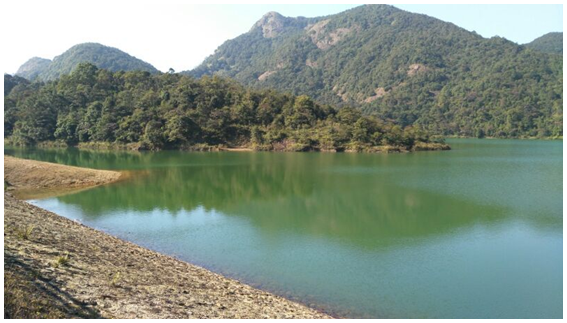 沿著“天南第一梯”登山步徑向上攀登,一路上大家攜老扶幼、互相幫助、互相鼓勵。登到4099級石階時,頓覺眼前豁然開朗。“白水寨”水庫――美麗靜謐的“仙女湖”呈現(xiàn)在眼前。密林環(huán)繞的仙女湖鑲嵌在群山之間,倒映出群山倒影。湖水綠如翡翠,美得令人窒息。真是“山窮水盡疑無路,柳暗花明又一村”啊!