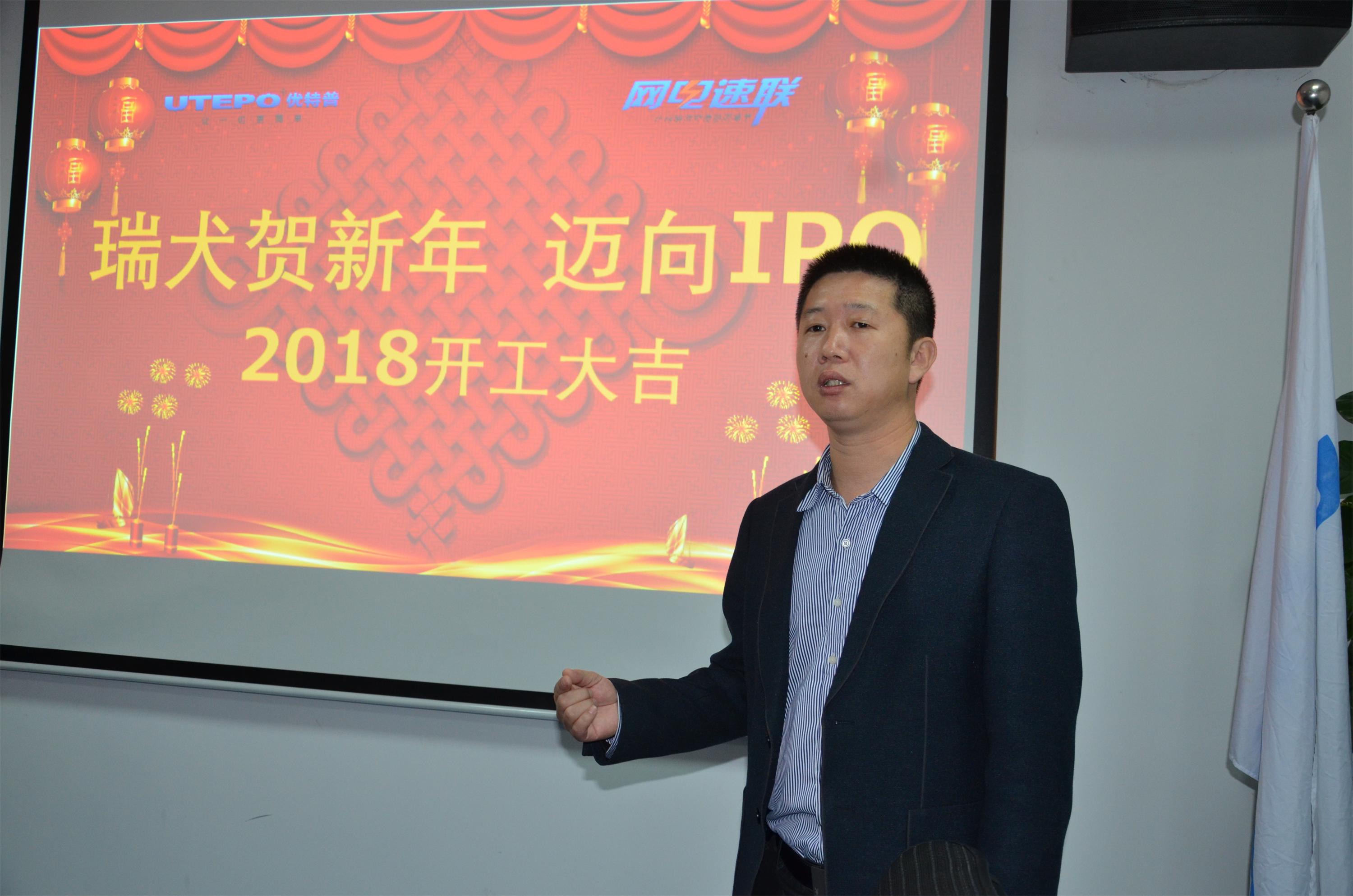 農(nóng)歷正月初八(2月23日),優(yōu)特普公司正式開工啦!在喜慶的音樂聲中,優(yōu)特普舉行了隆重又富有意義的2018開工儀式。一元復(fù)始,萬象更新。新的一年總是讓人充滿期待。優(yōu)特普科技首席技術(shù)官聶懷軍和優(yōu)特普科技總經(jīng)理于剛軍向大家致以美好的新春祝愿,祝愿大家在新的一年里,人旺財(cái)旺運(yùn)氣旺,所有夢想都成真。并期待大家在新的一年繼續(xù)努力,為成功實(shí)現(xiàn)IPO保駕護(hù)航。