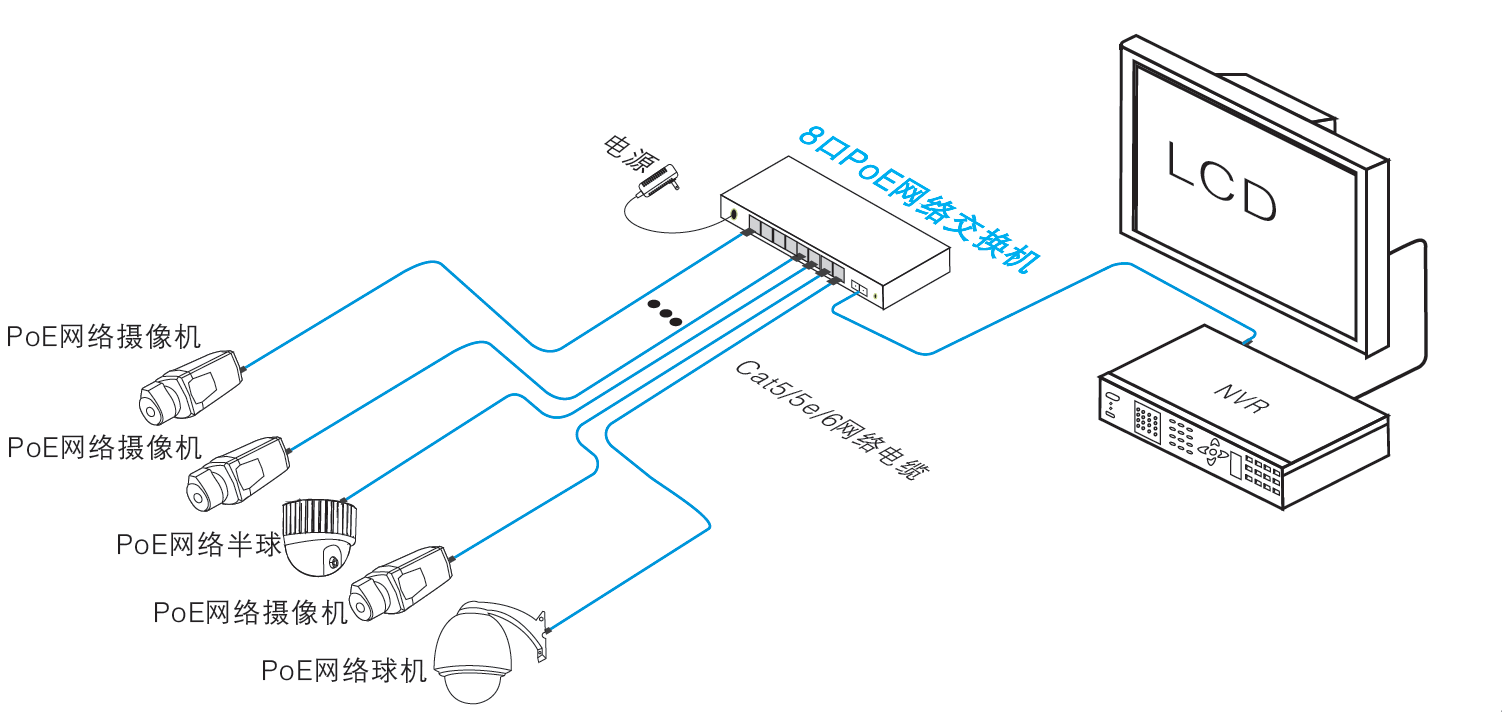 1、8個(gè)下聯(lián)百兆PoE電口,1個(gè)上聯(lián)百兆電口;