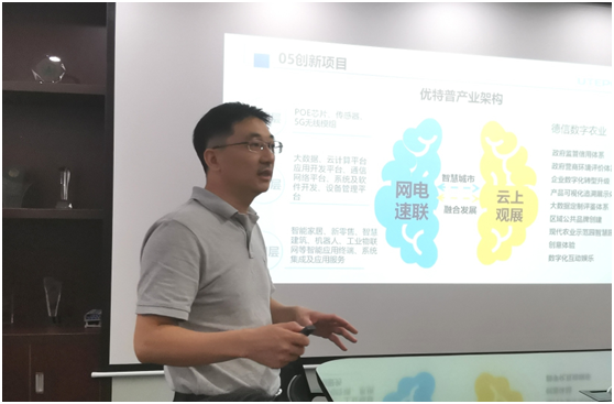 在聶懷東的帶領下,考察團參觀了優(yōu)特普公司總部、營銷中心、PoE創(chuàng)新實驗室、物聯(lián)網(wǎng)實驗室、研發(fā)中心。優(yōu)特普公司寬敞明亮、雅致舒適的辦公環(huán)境及專業(yè)的現(xiàn)代化實驗室給考察團成員留下了深刻印象。
