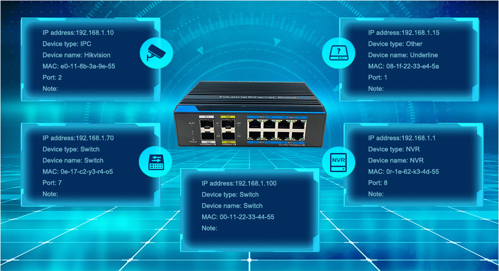 UTP7612S-PSD360支持ONVIF協(xié)議,可以自動識別支持ONVIF的IP攝像機、網(wǎng)絡(luò)視頻錄像機(NVR)和其他支持ONVIF的IP設(shè)備,如網(wǎng)絡(luò)視頻解碼器等。通過LLDP協(xié)議在WEB界面自動生成一份虛擬拓?fù)湟晥D,用戶可以通過拓?fù)鋱D了解其網(wǎng)絡(luò)連接的設(shè)備信息,如IP地址、設(shè)備類型、設(shè)備名稱、MAC地址等。