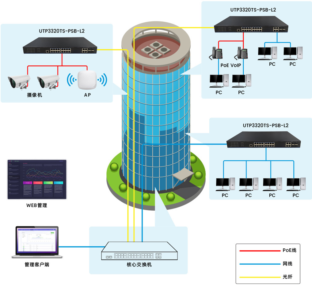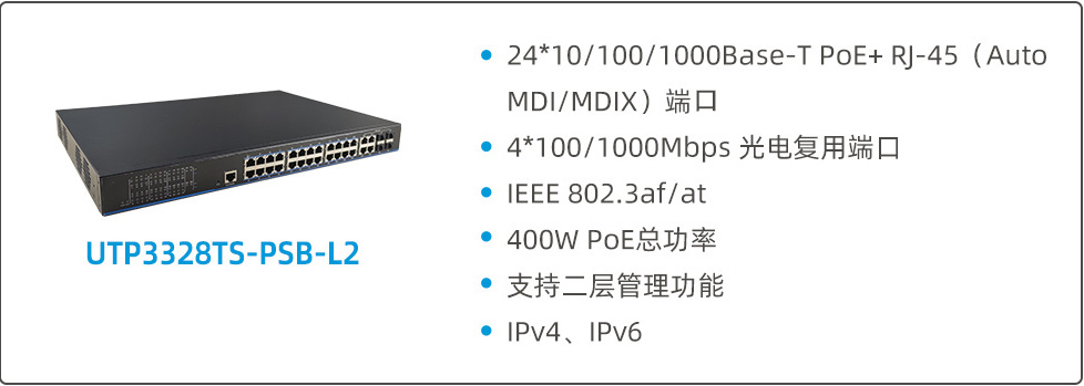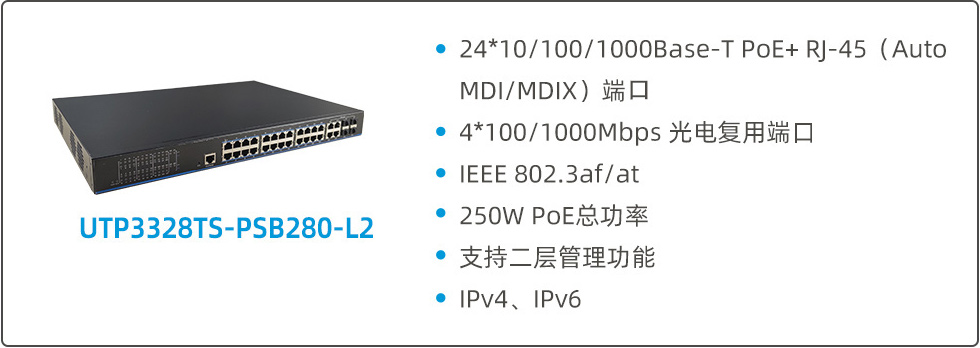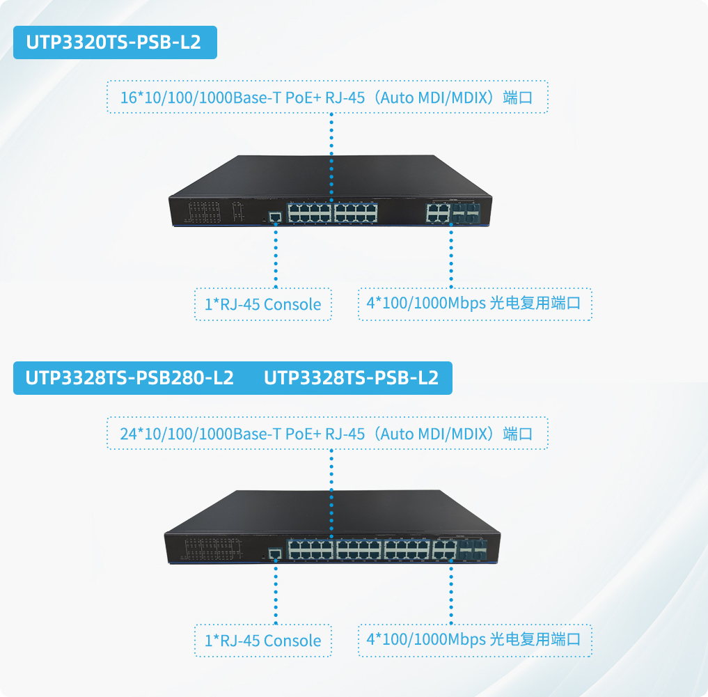 該系列產品提供16個或24個全千兆PoE供電端口,單端口可提供最大30W功率,符合IEEE 802.3af/at標準,可為IP終端(如IP攝像機、IP電話、AP等)提供穩(wěn)定、可靠、節(jié)能、安全的供電保障。上行端口配合4個千兆光電復用端口,大大擴展了設備的使用范圍,用戶可根據(jù)具體應用需求靈活組網(wǎng)。