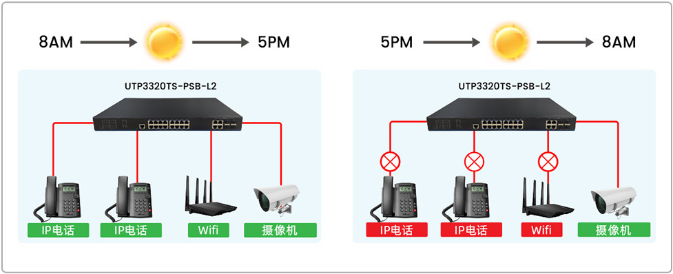 為您的辦公室定制PoE供電計劃表,您可以在非辦公期間停止對部分設備供電,節(jié)約能源。