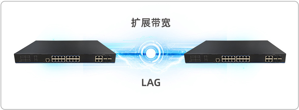 通過鏈路聚合(LAG),用戶可在兩個交換機之間建立多條鏈路以達到擴展帶寬的目的,實現(xiàn)均攤模式。同時,提供鏈路冗余備份,當該組某個成員端口鏈路出現(xiàn)故障時,可以最大限度地減輕網(wǎng)絡故障。