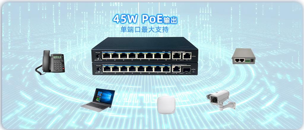 支持PoE供電,兼容IEEE 802.3af/at PoE標(biāo)磚,單端口最大支持45W PoE輸出,可為無線接入點(diǎn)、網(wǎng)關(guān)、IP電話、監(jiān)控?cái)z像頭等設(shè)備提供穩(wěn)定電源。