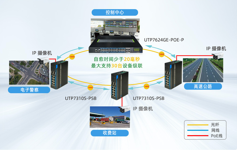 支持快速環(huán)網(wǎng),自愈時間小于20毫秒,當(dāng)主鏈路出現(xiàn)故障,備份鏈路開始工作。