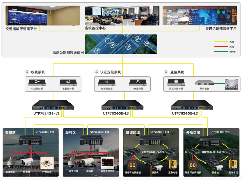 通過(guò)對(duì)交通業(yè)務(wù)狀況的深入分析,優(yōu)特普打造了針對(duì)交通復(fù)雜環(huán)境,基于PoE供電、PoE看門(mén)狗、永久PoE技術(shù)、智能自愈等技術(shù)工業(yè)級(jí)交換機(jī),通過(guò)以太網(wǎng)線纜為各終端供電,實(shí)現(xiàn)網(wǎng)絡(luò)和供電一體化。