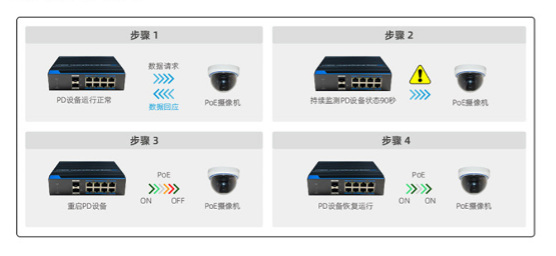 PoE Watchdog(看門(mén)狗),實(shí)現(xiàn)PoE攝像機(jī)掉線自動(dòng)偵測(cè)、自動(dòng)重啟,減少系統(tǒng)維護(hù)成本。