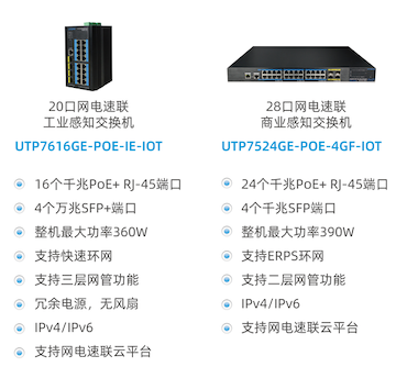 優(yōu)特普提供多端口匯聚、核心交換機(jī),產(chǎn)品支持豐富的二層、三層網(wǎng)管功能,在可用性、可擴(kuò)展性和安全性方面具有良好優(yōu)勢(shì)。搭配可視化運(yùn)維綜合管理平臺(tái)(網(wǎng)電速聯(lián)云平臺(tái)),網(wǎng)絡(luò)管理員可對(duì)交換機(jī)、網(wǎng)關(guān)、攝像機(jī)、傳感器、智慧桿等物聯(lián)設(shè)備的網(wǎng)、電數(shù)據(jù)進(jìn)行全方位管理。