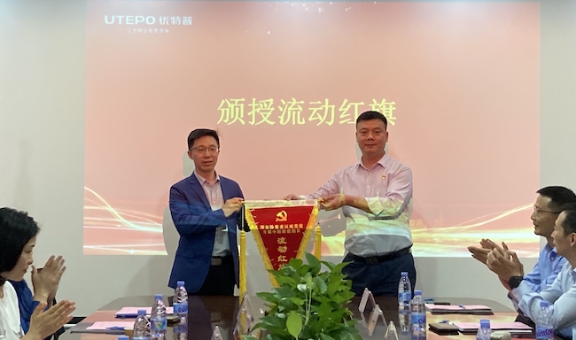 此次南山區(qū)黨建互助聯(lián)盟座談交流會議程主要有,優(yōu)特普展廳參觀、黨員宣誓、頒授流動紅旗、黨建指導員講黨課、優(yōu)特普黨支部黨建工作介紹、黨建共建揭牌儀式、頒發(fā)榮譽證書等環(huán)節(jié)。活動現(xiàn)場氣氛熱烈,各黨支部及企業(yè)代表各抒己見,為黨建賦能企業(yè)發(fā)展獻言獻策。