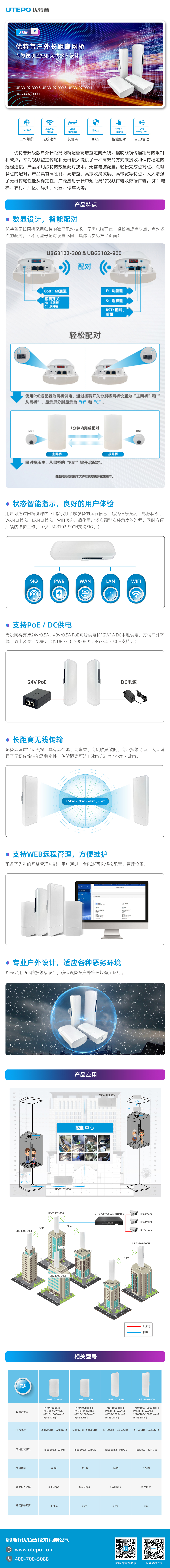 ● UBG3302-900H:15dBi 增益 2*2MIMO 天線,最遠 6km 傳輸距離