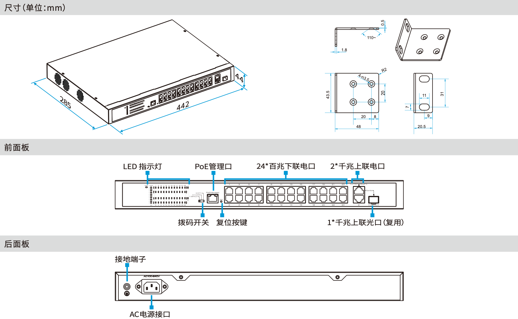 26口百千混合以太網(wǎng)供電交換機(jī) (390W)