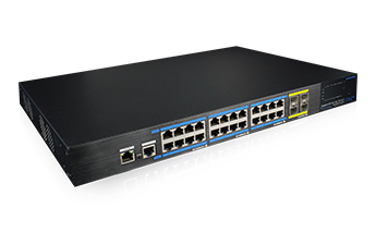 ● 24個(gè)下聯(lián)千兆PoE電口,4個(gè)上聯(lián)萬兆光口;