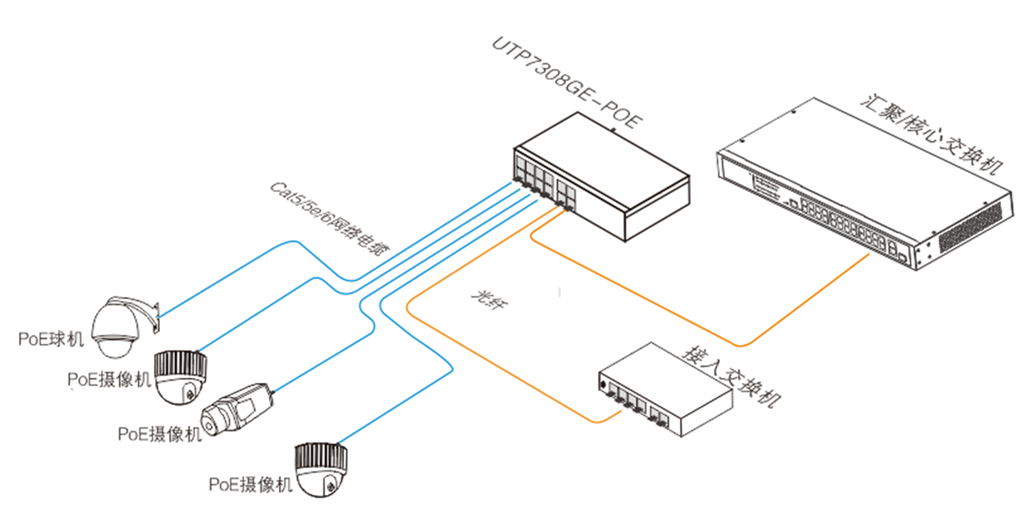 ● UTP7308GE-POE:8*10/100/1000Base-T PoE+ RJ-45端口,4*1000Base-X SFP端口