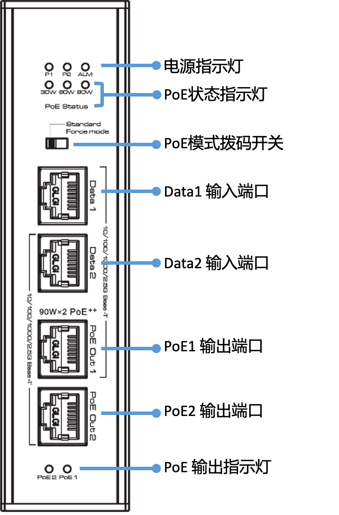 該系列產(chǎn)品為90W工業(yè)級PoE供電器。