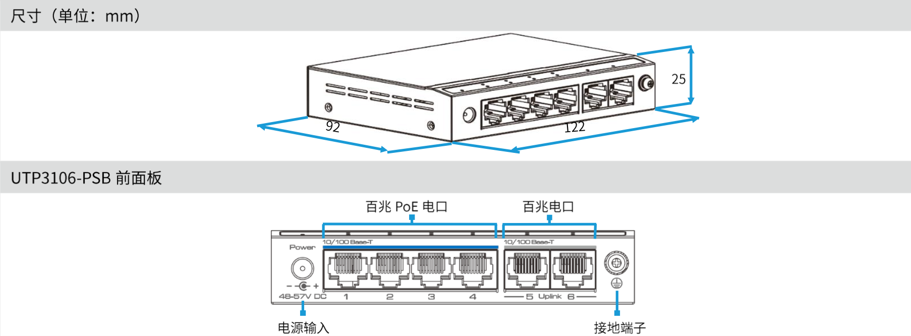 ● UTP3106-PSB / UTP3106-PSD:6口全百兆PoE交換機